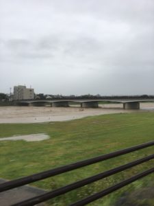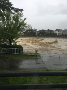犀川の濁流です。人生のほとんどを犀川の近くで過ごしてきて橋の下に水がついたのは初めてみました。